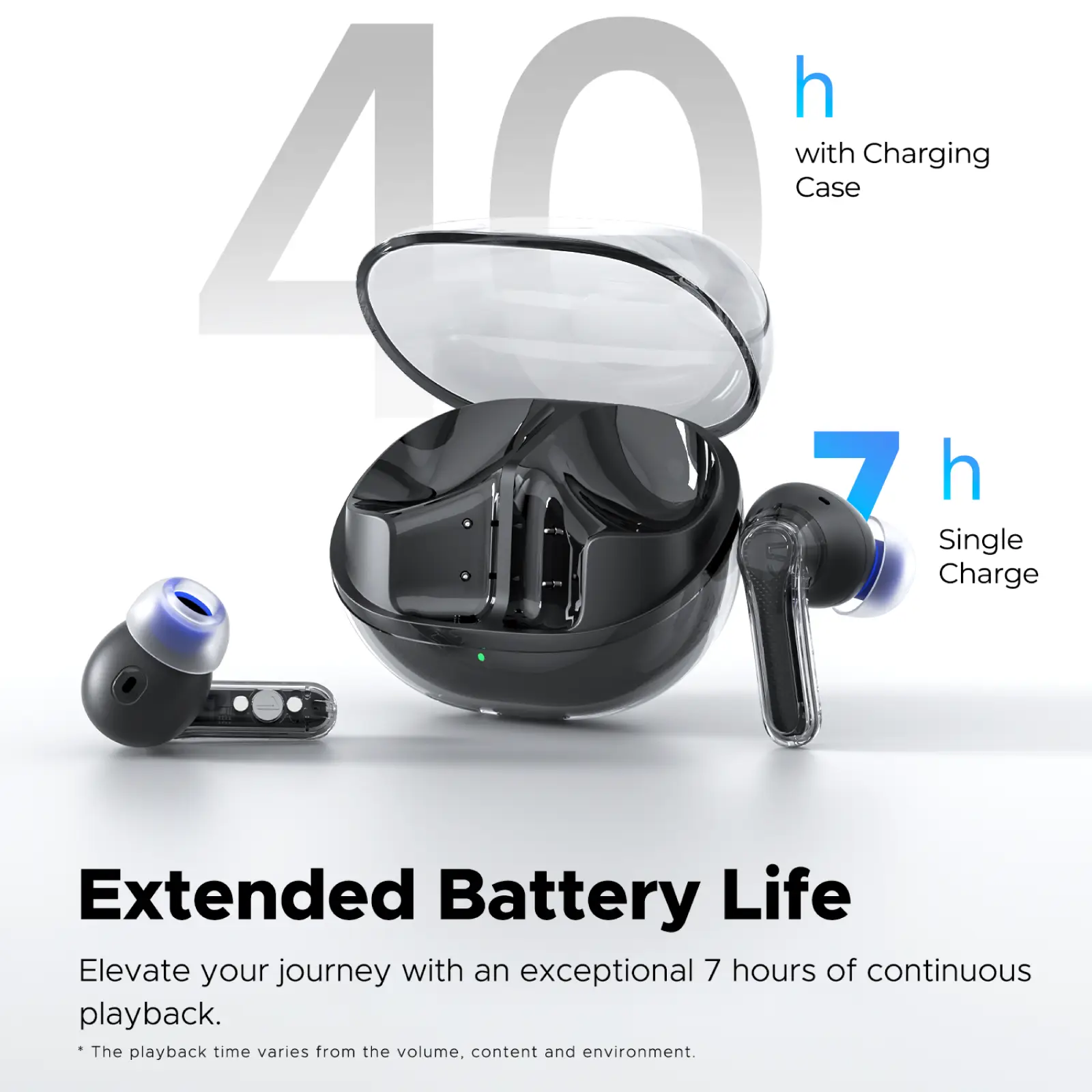 Up to 7 hours on a single charge and 40 hours with charging case — perfect for long use.
